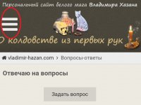 Да, с 25 ноября была настроена версия моего сайта для мобильных телефонов. Если вы читаете этот сайт на экране компьютера, ноутбука или планшета, всё будет как и прежде. Если же вы пользуетесь для чтения смартфоном, общий вид сайта останется знакомым, но текст автоматически будет адаптирован под размер экрана вашего телефона для максимального удобства чтения. Разница лишь в том, что в компьютерной версии меню разделов и важные объявления всегда находятся в левой части экрана. А в версии для мобильных телефонов нужно нажать на кнопку с тремя полосками в верхней левой части экрана, после чего выпадет страничка с меню разделов, под которым теперь будут и объявления с важной информацией - не забывайте их просматривать! На данный момент это анонс статьи недели, информация о записи на ритуал годовой удачи и напоминание о том, что до окончания коронавирусной пандемии личный приём остановлен и магическая работа ведётся дистанционно, по фото.